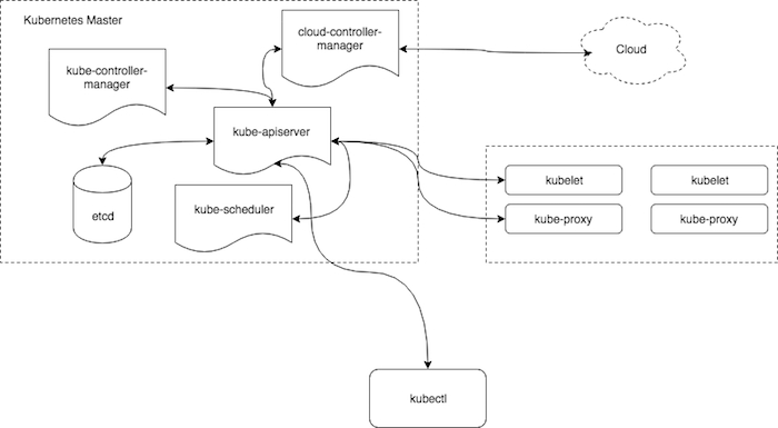 Mối tương quan giữa Kubernetes Master và Kubernetes Node có thể biễu diễn qua hình vẽ sau: